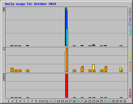| Day | Hits | Files | Pages | Visits | Sites | KBytes | ||||||